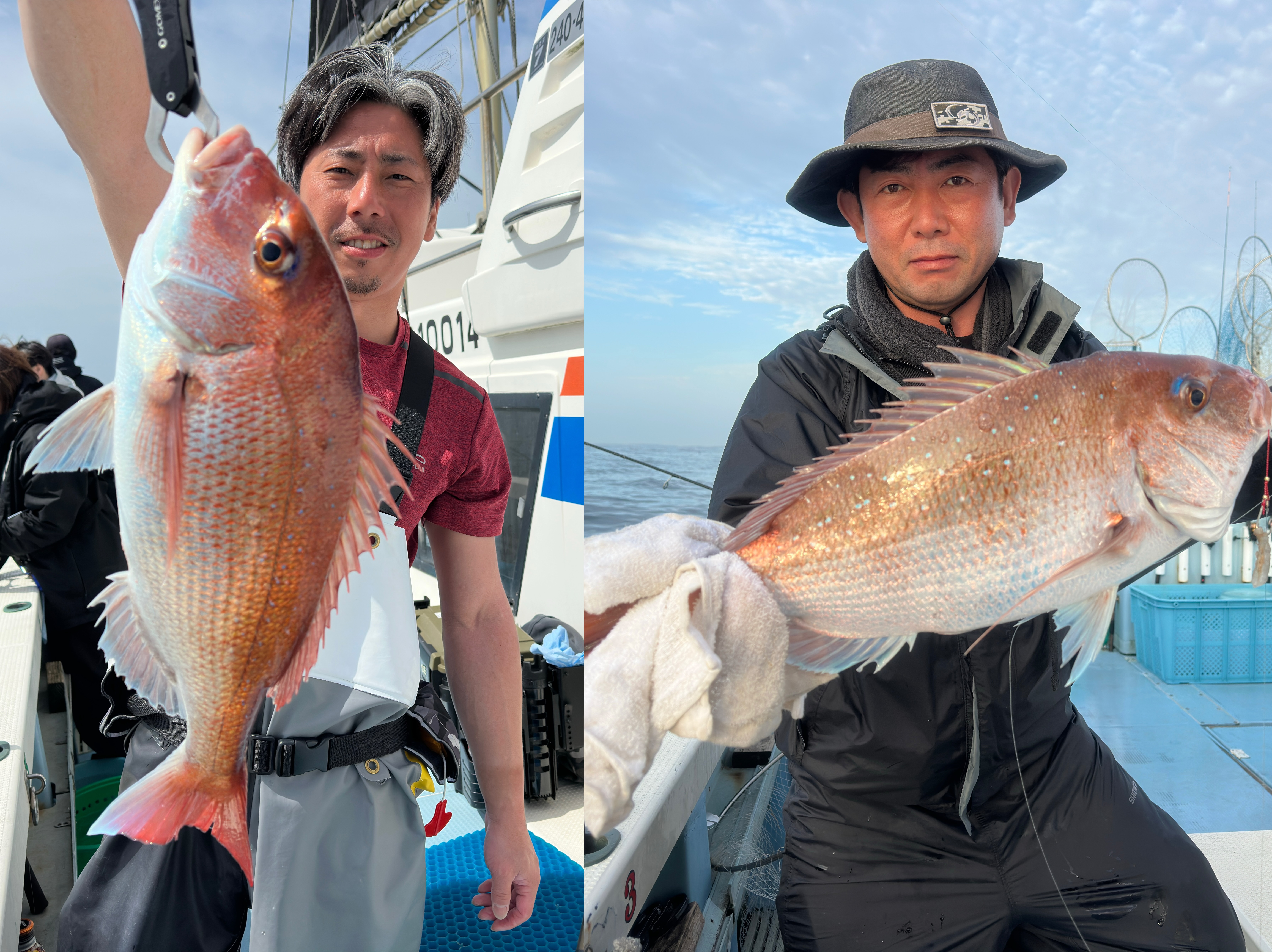 【乗合】今日は昨日に引き続き台風のうねりがあり苦戦。前半はアタリ少なく後半からアタリが出始め、中鯛混じりで何とかお土産になった感じでした。
